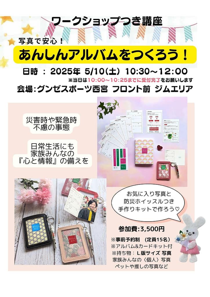 手作りキットと各自が用意する写真を用いて、緊急時の自分や家族の備えと 同時に もしもの時の心の支えにもなる