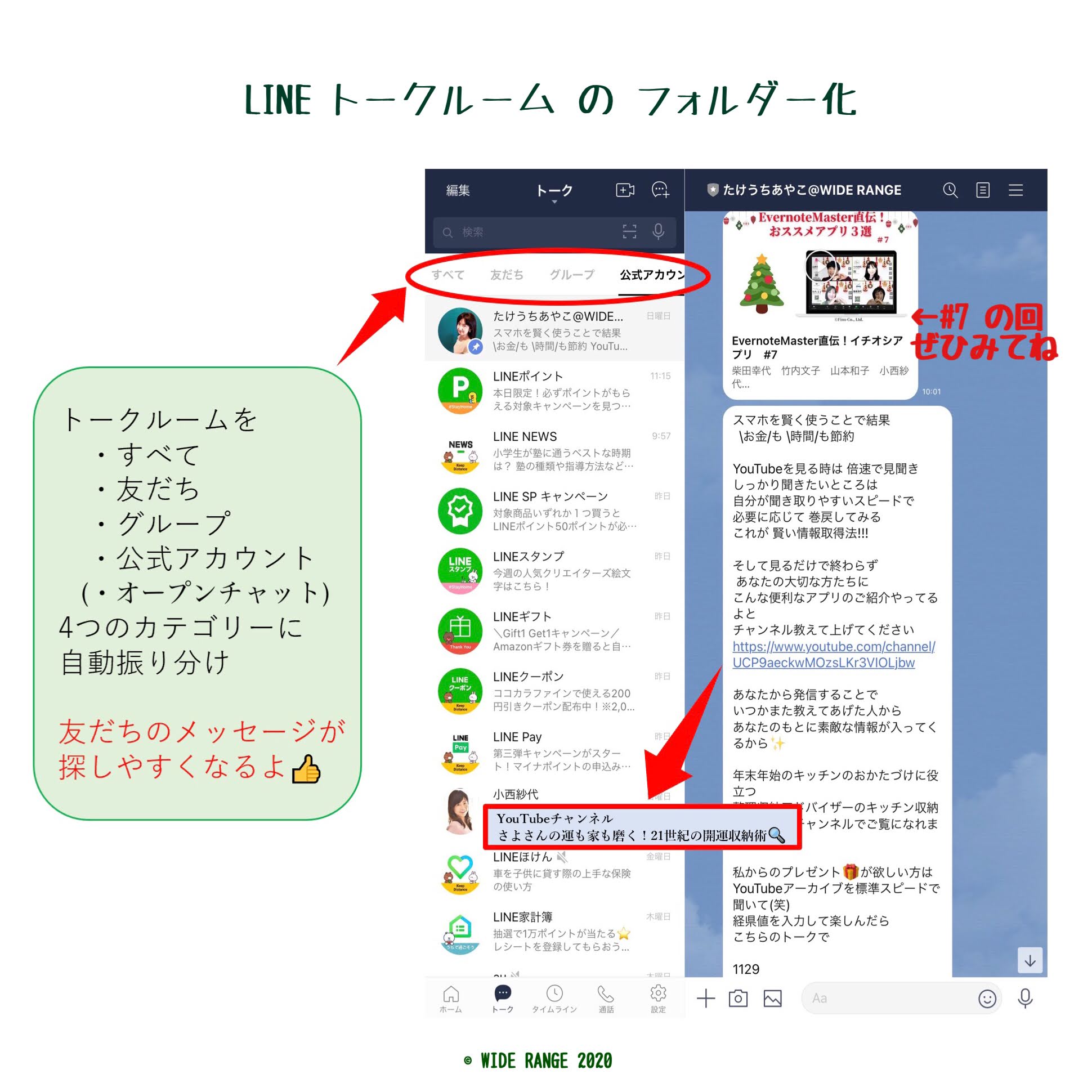 『友だち』だけ 『グループ』だけ 『公式アカウント』だけ と分類されてリスト画面が切り替わります