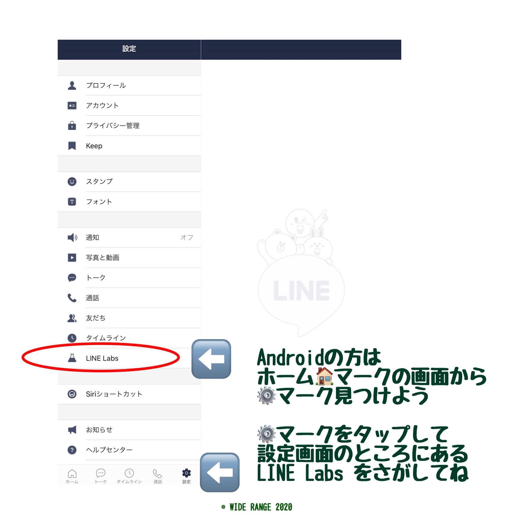 LINEのお試し機能を利用できる設定箇所 LINE Labs