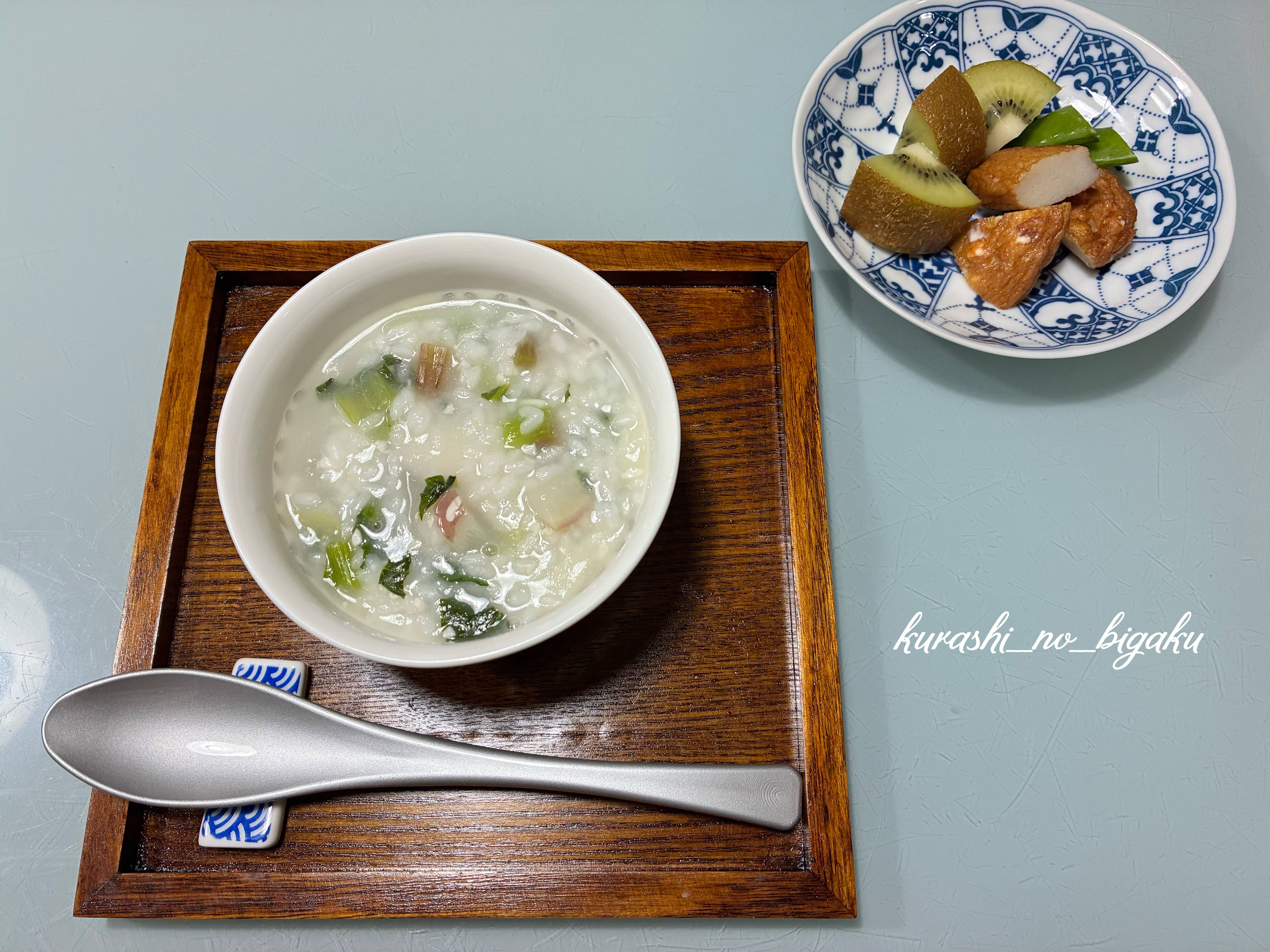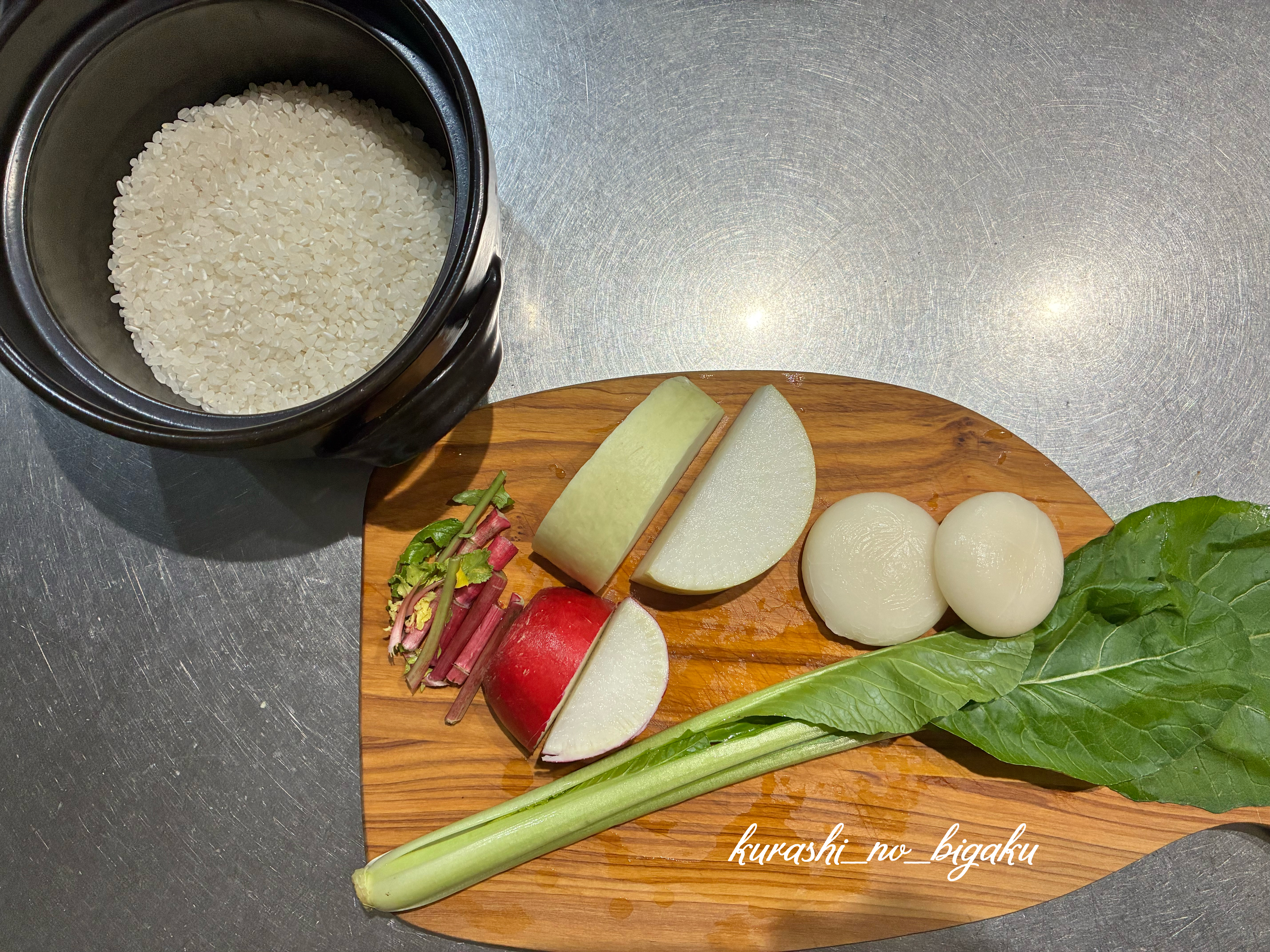 七草セットを買い損ねたことで、逆に自分なりの七草がゆ作りを楽しみ味わった