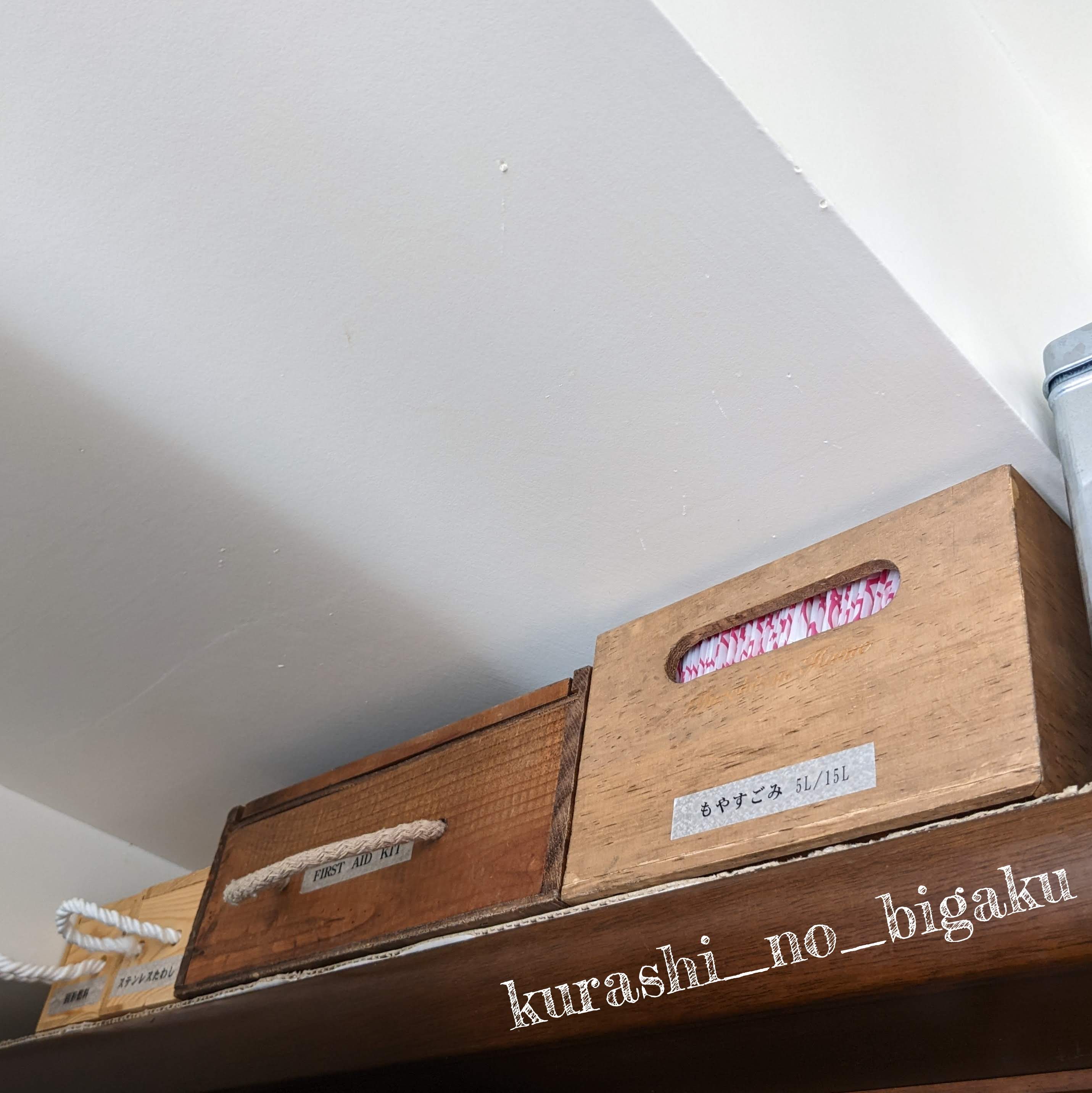 木箱は 食器棚と梁の間にちょうどおさまる もともとの定位置へ