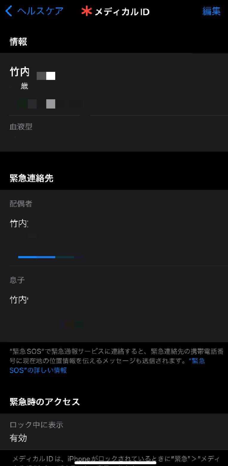 ヘルスケア詳細も含め、必要に応じて各項目入力してロック中に表示を有効にしておきましょう。