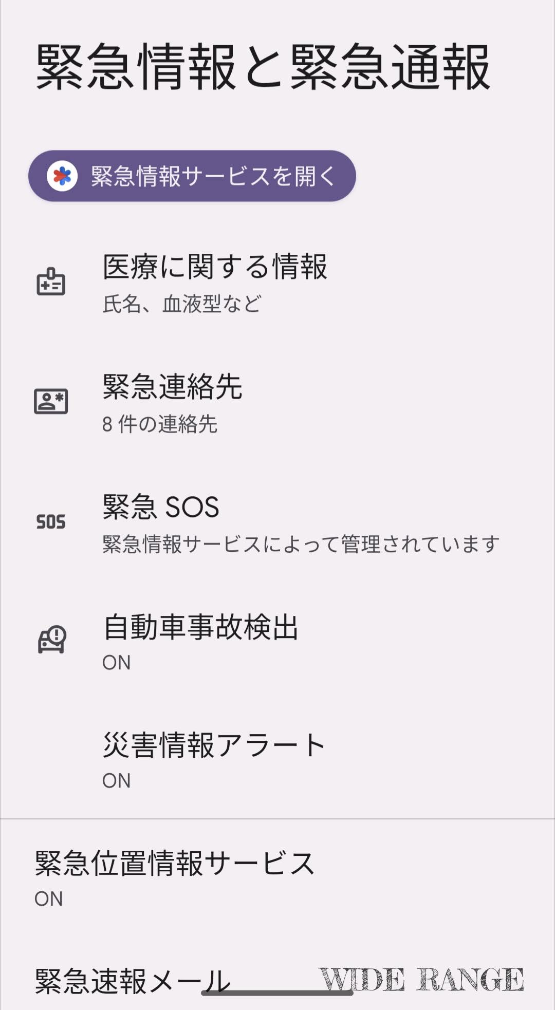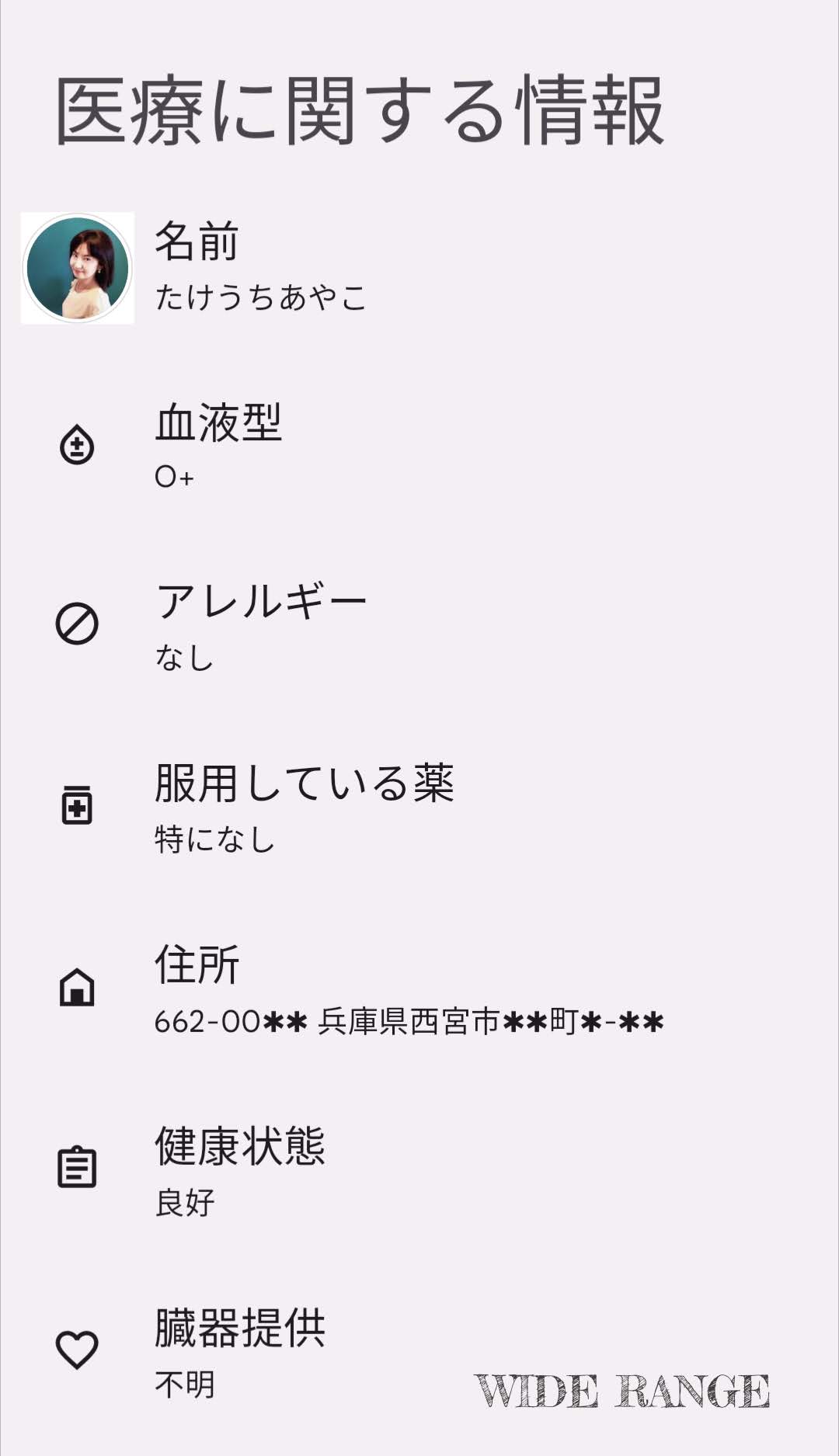 緊急時情報の表示は端末の設定から情報を前もって登録しておかなければなりません